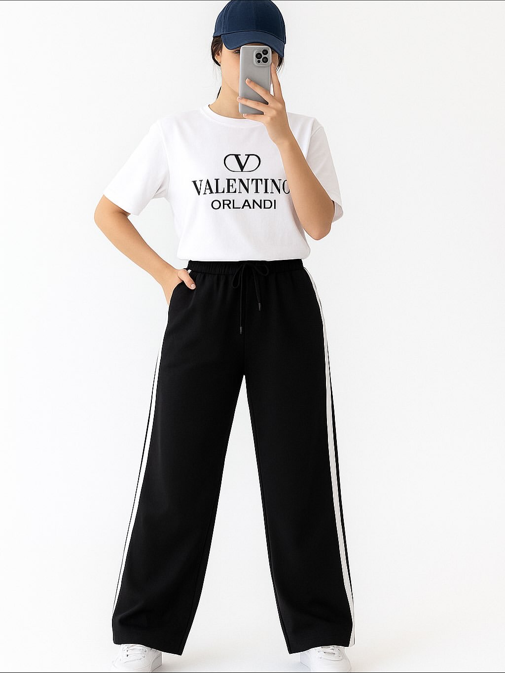 .شلوار بگ نواری نوع جنس: مازراتی مدل : بگ نواردار جیبدار سایزبندی ؛۱و۲ سایز ۱ دور ران شلوار ۵۹ قد۱۰۰ سایز ۲ دور ران شلوار ۶۶ قد ۱۰۰ رنگبندی : مشکی تک